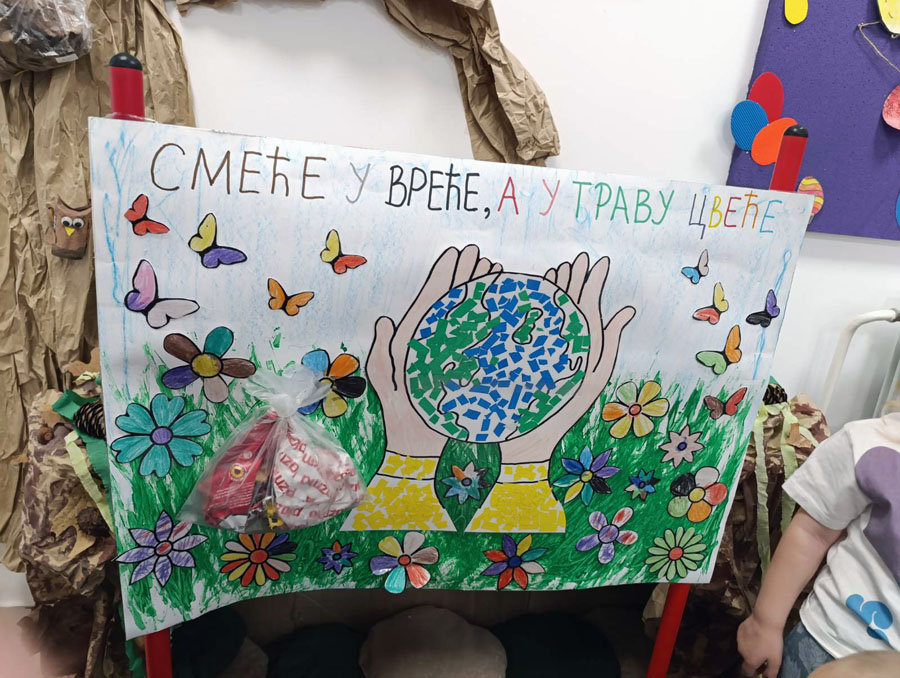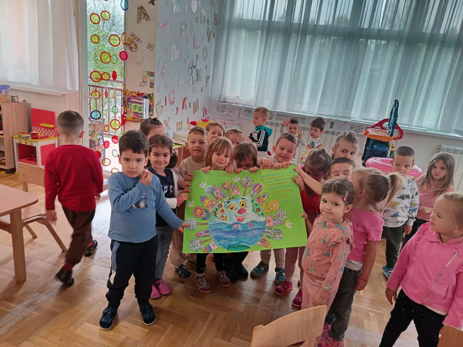 22.04.2026. године обележен је Дан планете Земље у нашем вртићу. Наши малишани из три млађе и једне мешовите групе својим вредним рукицама, разним ликовним техникама, направили су паное у част очувања планете Земље.