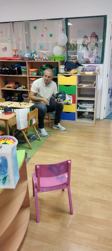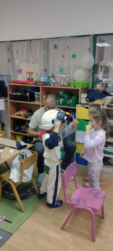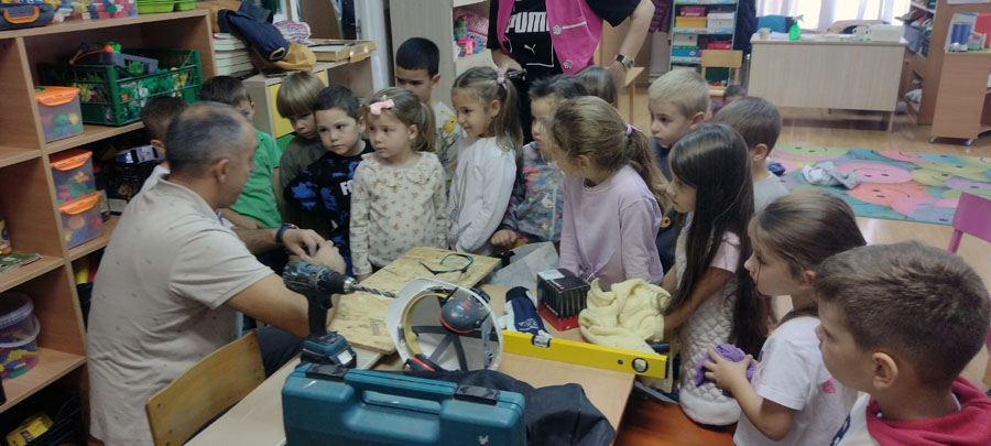Старија група васпитачица Бебе и Драгане је у процесу формирања симболичке просторне целине "мајсторска радионица", Овом приликом угостили су оца који је деци причао о заштити на раду.