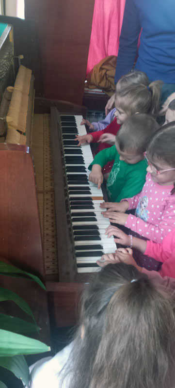 Истражујући у свом пројекту "Чујем, свирам, стварам", група васпитачица Биљане и Марине посетила је ОШ "Свети Сава" а наставник музичке културе им је причао о настанку музике. Уживали су у звуцима клавира, певали и свирали. Посетили су и час ликовне културе и од ученика петог разреда научили како се музика представља бојом.