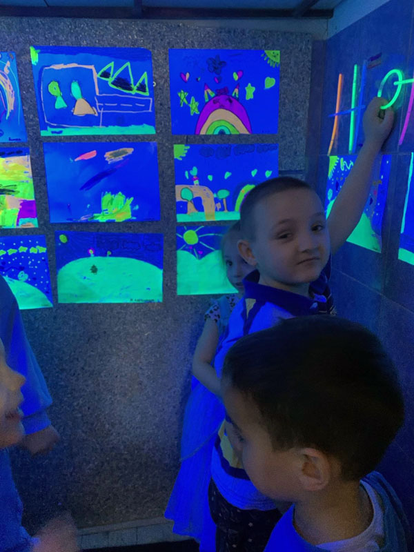 Деца из групе васпитачица Драгице и Данице данас су угостила веома драге госте из развојне групе, који су посетили "Светлосну изложбу" у оквиру пројекта "Светлост, тама и сенке". Деца су посебно уживала у необичним светлосним ефектима и неонским бојама.