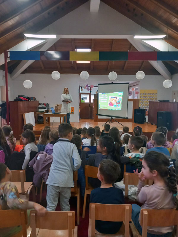 Светски дан хране обележили смо дружењем са магистром фармације Андријаном Марјановић. Упознала нас је са Витаминском математиком. На поклон смо добили бојанку Мој фармацеут и ја. На крају смо попунили тест Витаминска математика - бројимо до здравља.