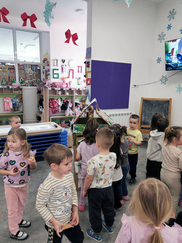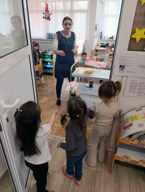 Млађа група васпитачица Биљане и Драгане прославила је завршетак пројекта "Кућица, кућица" кроз позивање другара из других млађих група да пробају њихову "слатку кућицу" коју су направили по узору на познату бајку, а на идеју дечака из групе. Кроз плес и музику деца су уживала у ђаконијама "кућице слаткице".